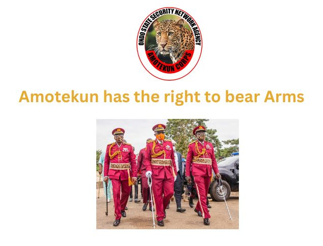 Undoubtedly, the need for members of the Amoktekun Corps to carry assault weapons has become necessary and immediate in view of the announced incursion of Islamic State West Africa Province (ISWAP) into the South West region. According to the terrorist group, “we are already in the South West, we are responsible for attacks in Ondo State.”  The terror group went further and stated that the attack in Ipele, Owo Local government area of Ondo state was carried out by “soldiers of the caliphate.”